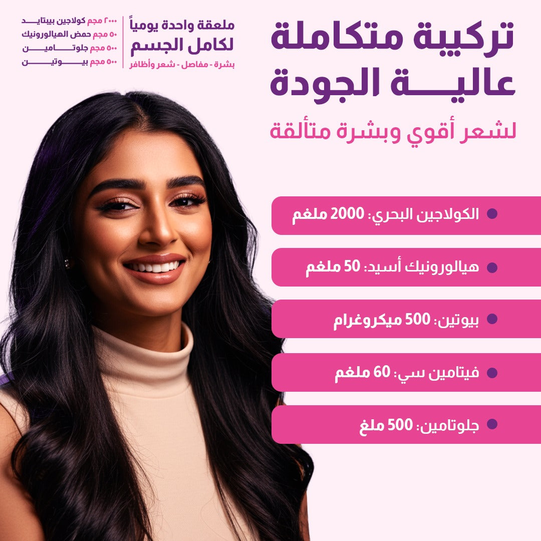 This powerful formula contains high-quality marine collagen peptides, renowned for their superior absorption and bioavailability. It helps restore skin hydration, improve hair and nail strength, and support joint and muscle function.