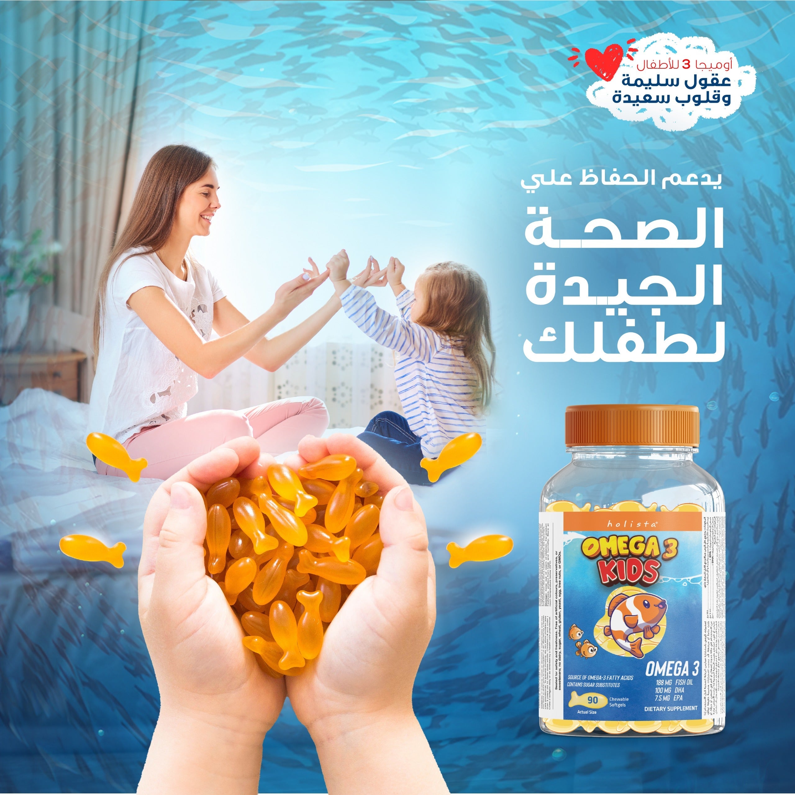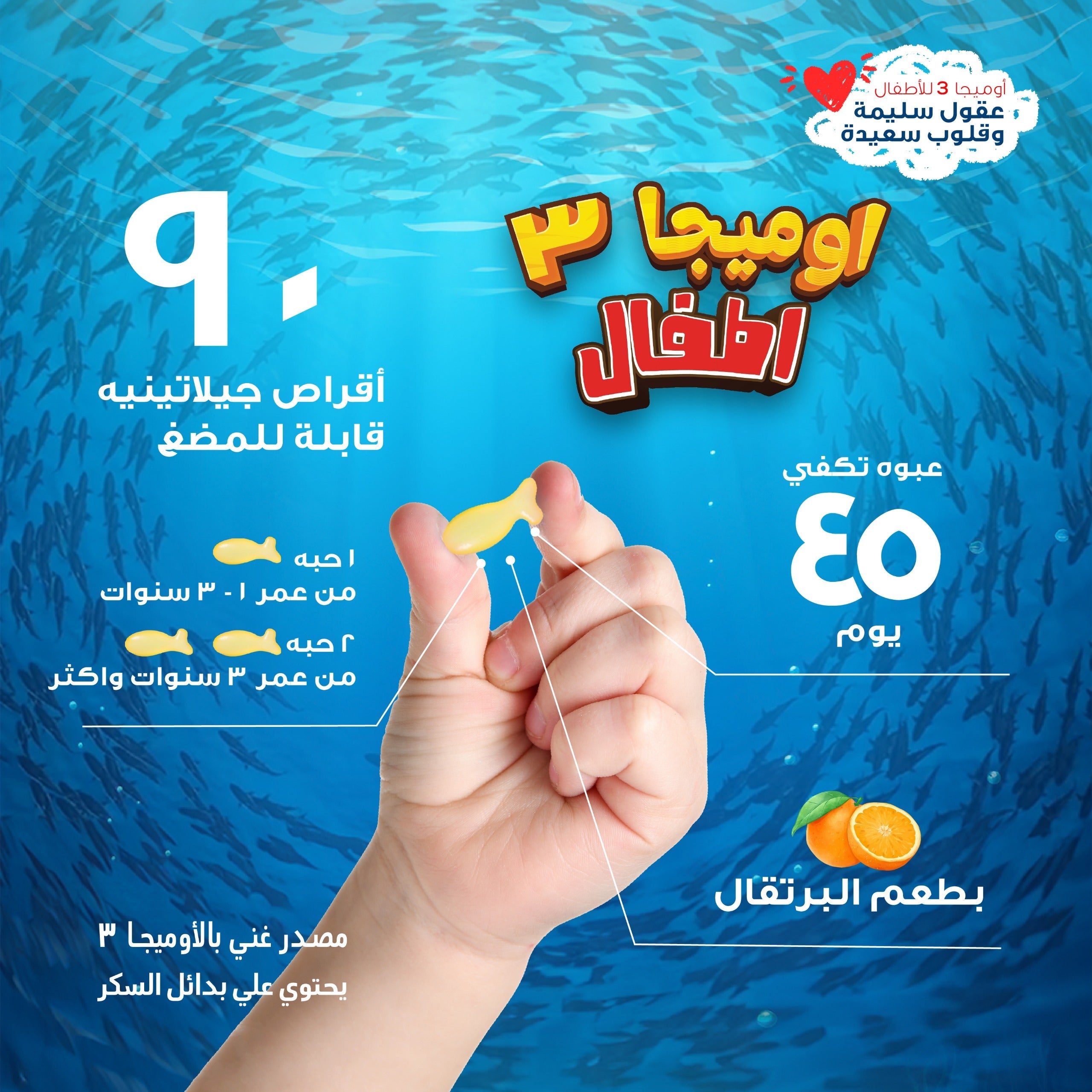 تحتوي كل جرعة على 15 ملغ من EPA و200 ملغ من DHA لدعم نمو الدماغ، تحسين الذاكرة والتركيز، جودة النوم، وصحة العينين والجلد. تعد هذه الكبسولات طريقة فعّالة وسهلة لضمان حصول طفلك على العناصر الغذائية الأساسية التي تعزز التطور الذهني والمعرفي والجسدي.
