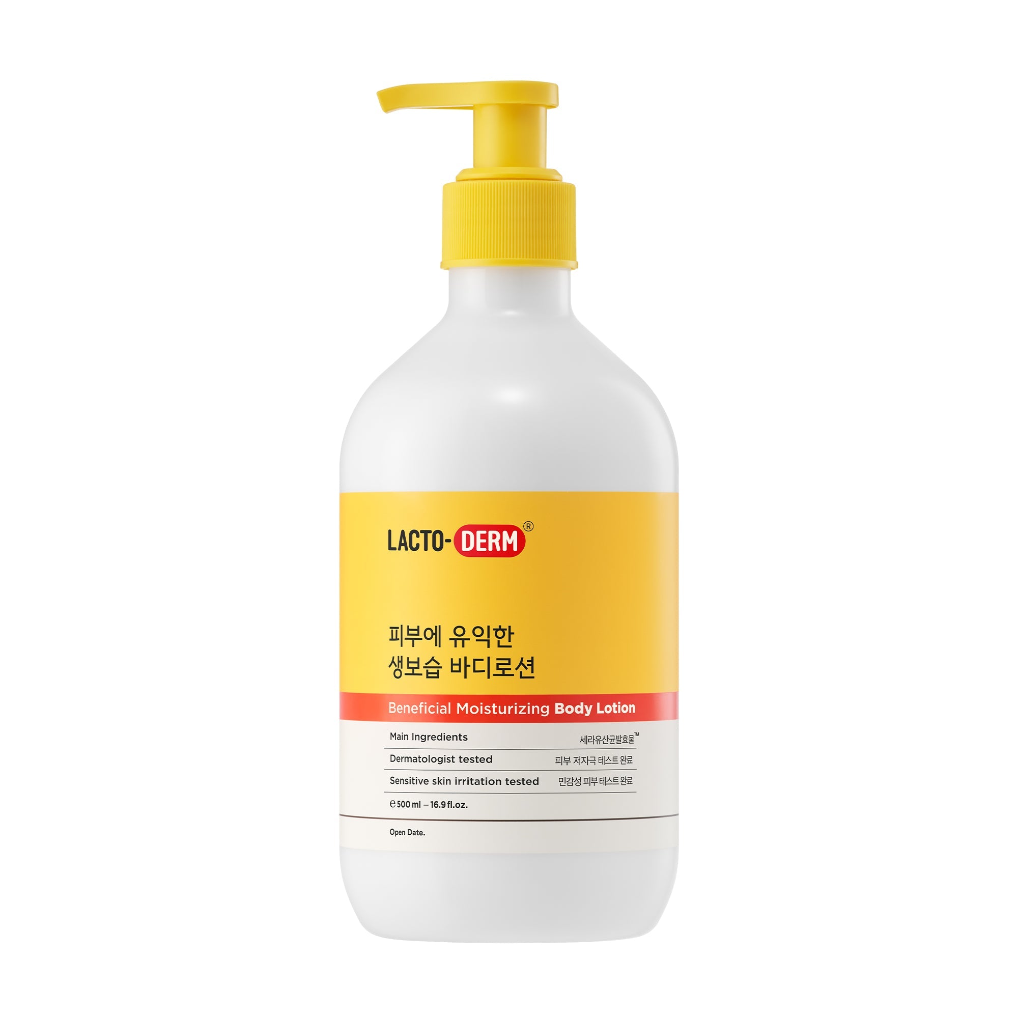 امنحي بشرتك الترطيب العميق والحماية طويلة الأمد مع لاكتوديرم لوشن الجسم المرطّب (500 مل) – أول لوشن كوري مدعّم بـ 100 مليار بروبيوتك لتقوية حاجز البشرة، تهدئة التهيّج، واستعادة التوازن الطبيعي للبشرة.
