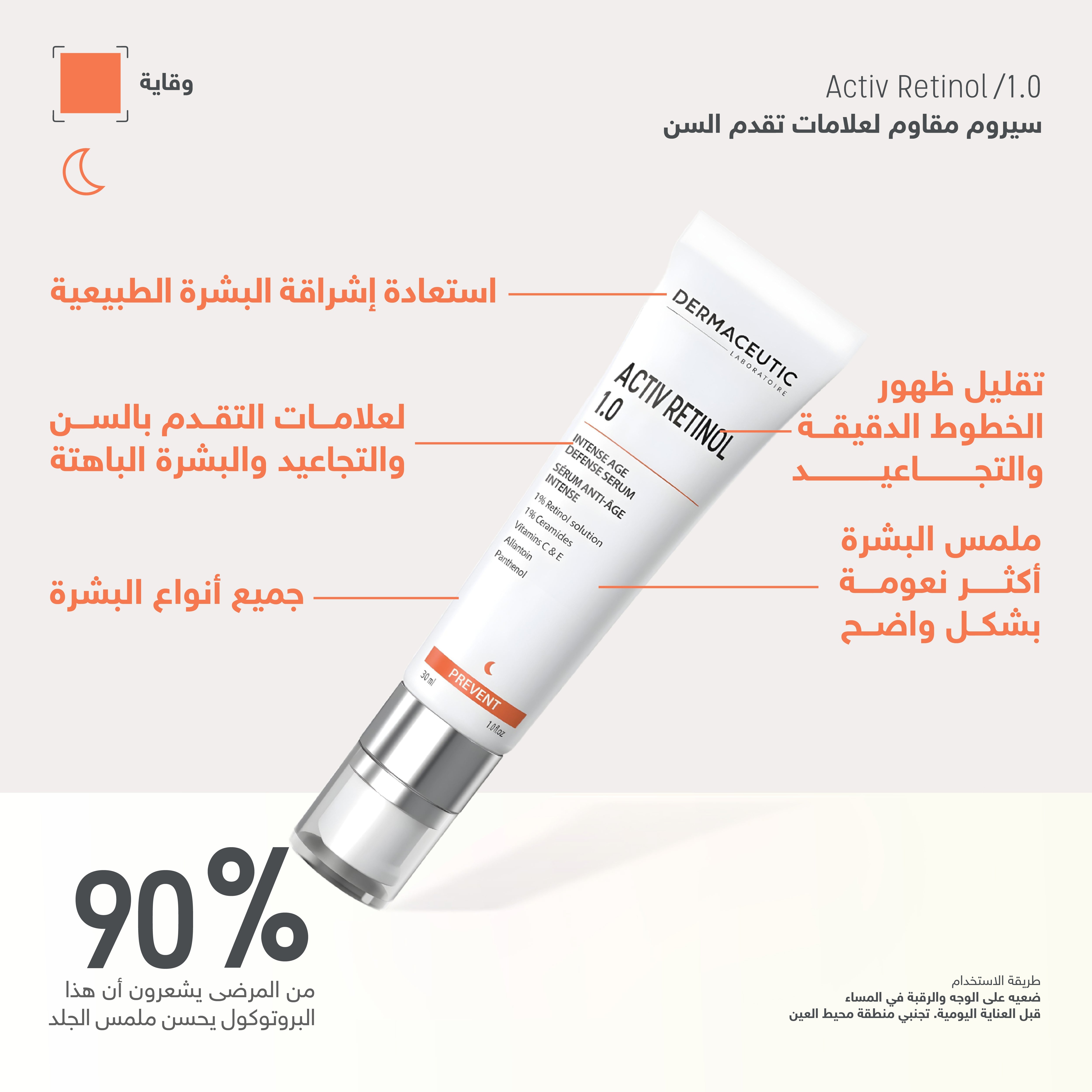 سيروم الدفاع عن البشرة لعلاج علامات تقدم السن وفقدان مرونة البشرة والبشرة الباهت، مناسب لجميع أنواع البشرة.