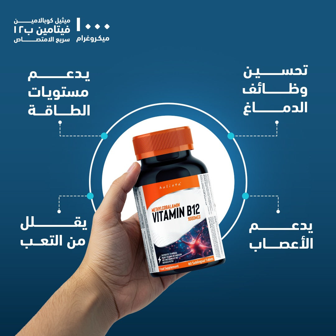 أقراص فيتامين ب12 تحت اللسان من هوليستا هي مكمل غذائي متقدم يحتوي على ميثيل كوبالامين، الشكل الطبيعي والأكثر نشاطًا من فيتامين ب12. تم تصميم هذا المكمل خصيصًا لزيادة مستويات الطاقة، ودعم وظائف الجهاز العصبي، وتحسين الأداء المعرفي. بفضل تقنية الامتصاص السريع تحت اللسان، يضمن امتصاصًا أعلى وفعالية أكبر، مما يجعله خيارًا مثاليًا للأشخاص الذين يعانون من نقص فيتامين ب12 أو الباحثين عن حيوية وصفاء ذهني أفضل.