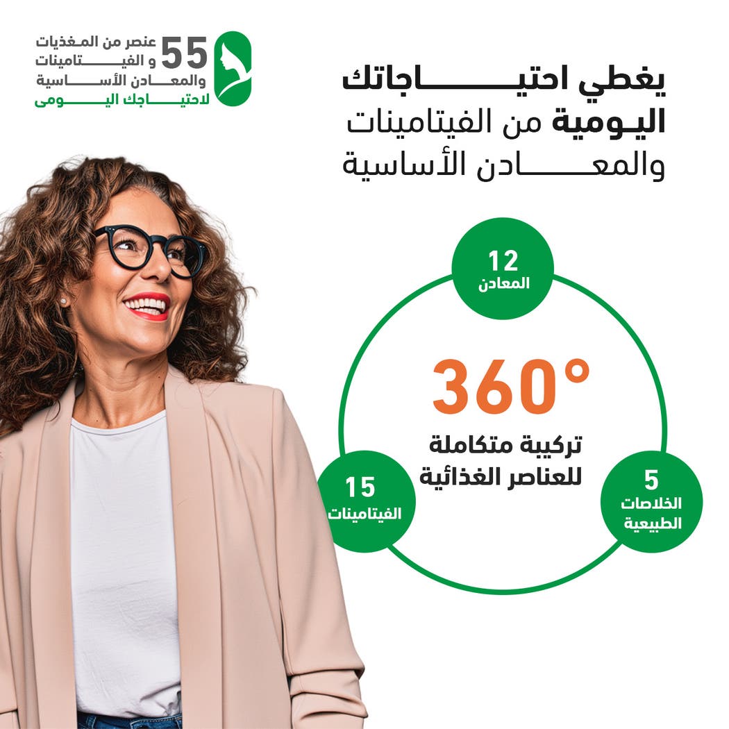 تمت صياغته من 28 مصدرًا غذائيًا طبيعيًا، وتوفر كل كبسولة تغطية غذائية شاملة في شكل عملي وسهل البلع. يحتوي المنتج على مكونات فعالة مثل فيتامين K2 (بصورته الفعالة MK7)، الكولين، الإينوزيتول، اللوتين، ومستخلصات الفواكه الغنية بمضادات الأكسدة لدعم حيوية المرأة المثالية.