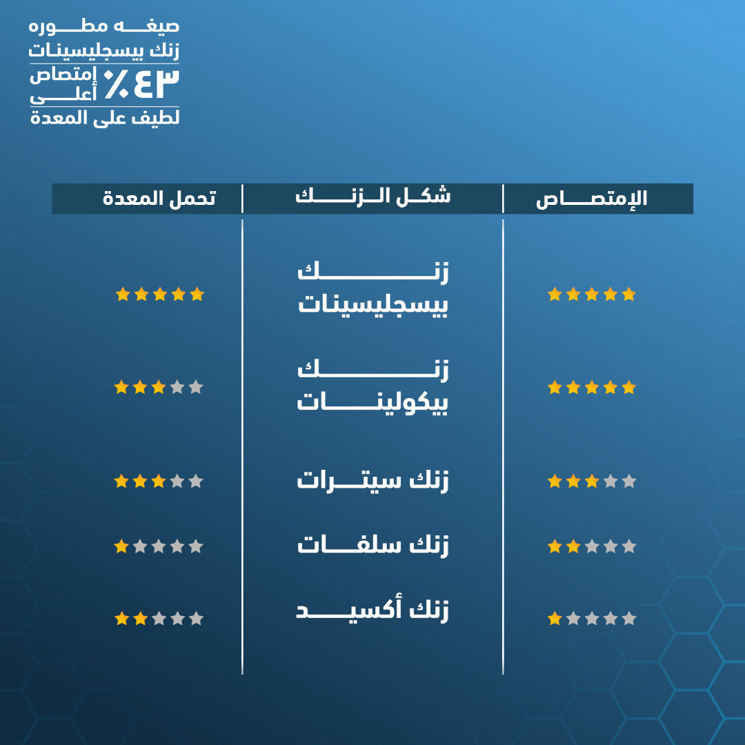 التركيبة: بيسغليسينات الزنك 50 ملغ