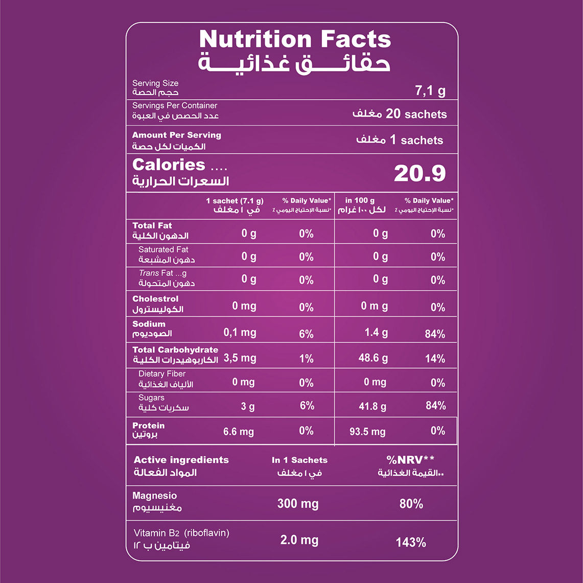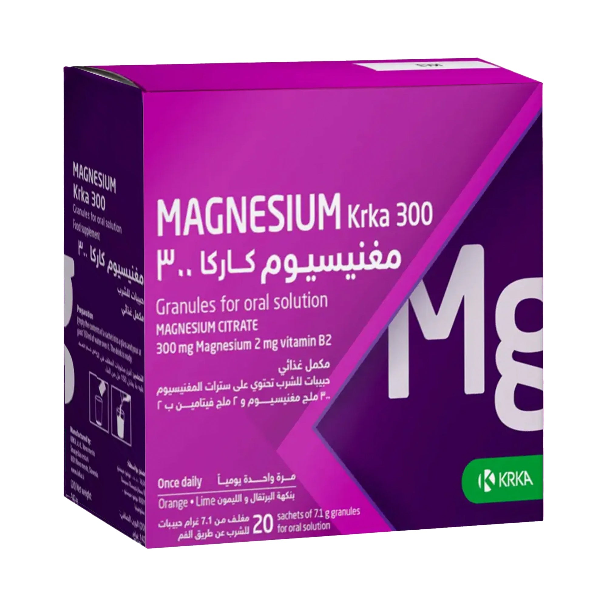 كاركا ماغنيسيوم سترات 300 مغ بالإضافة إلى فيتامين ب2 بطعم البرتقال والليمون، يعمل على تقليل التهاب الأعصاب، ويساعد على إنتاج الطاقة، ويقلل من تقلص العضلات خصوصًا عند الرياضيين.