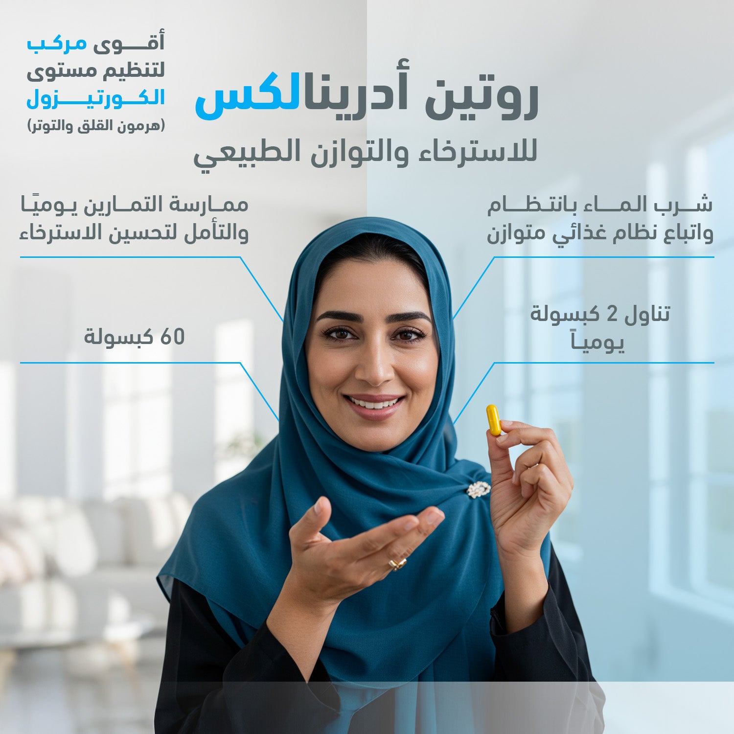 هي مكمل غذائي ممتاز مصمم لدعم التوازن الصحي لهرمون الكورتيزول – هرمون الإجهاد الأساسي في الجسم. هذه التركيبة المتقدمة مثالية لإدارة الإجهاد اليومي، تعزيز الصحة النفسية والجسدية، ودعم الرفاهية العامة. توفر كل جرعة يومية مزيجًا قويًا من المكونات المدعومة علميًا، بما في ذلك KSM-66® Ashwagandha وRhodiola Rosea والمغنيسيوم وفيتاميني B5 وB6 بالإضافة إلى مستخلص الفلفل الأسود لتعزيز الامتصاص والفعالية.