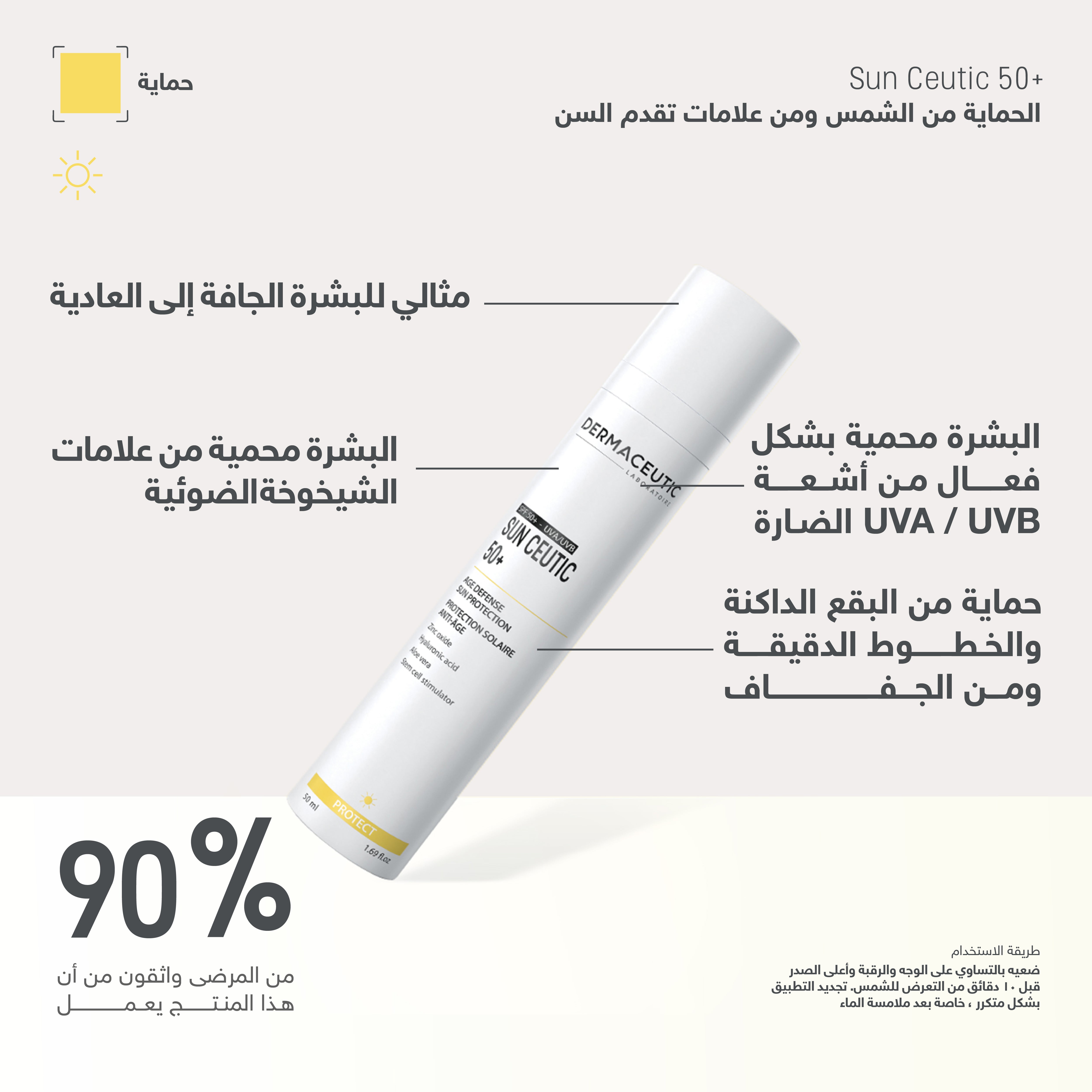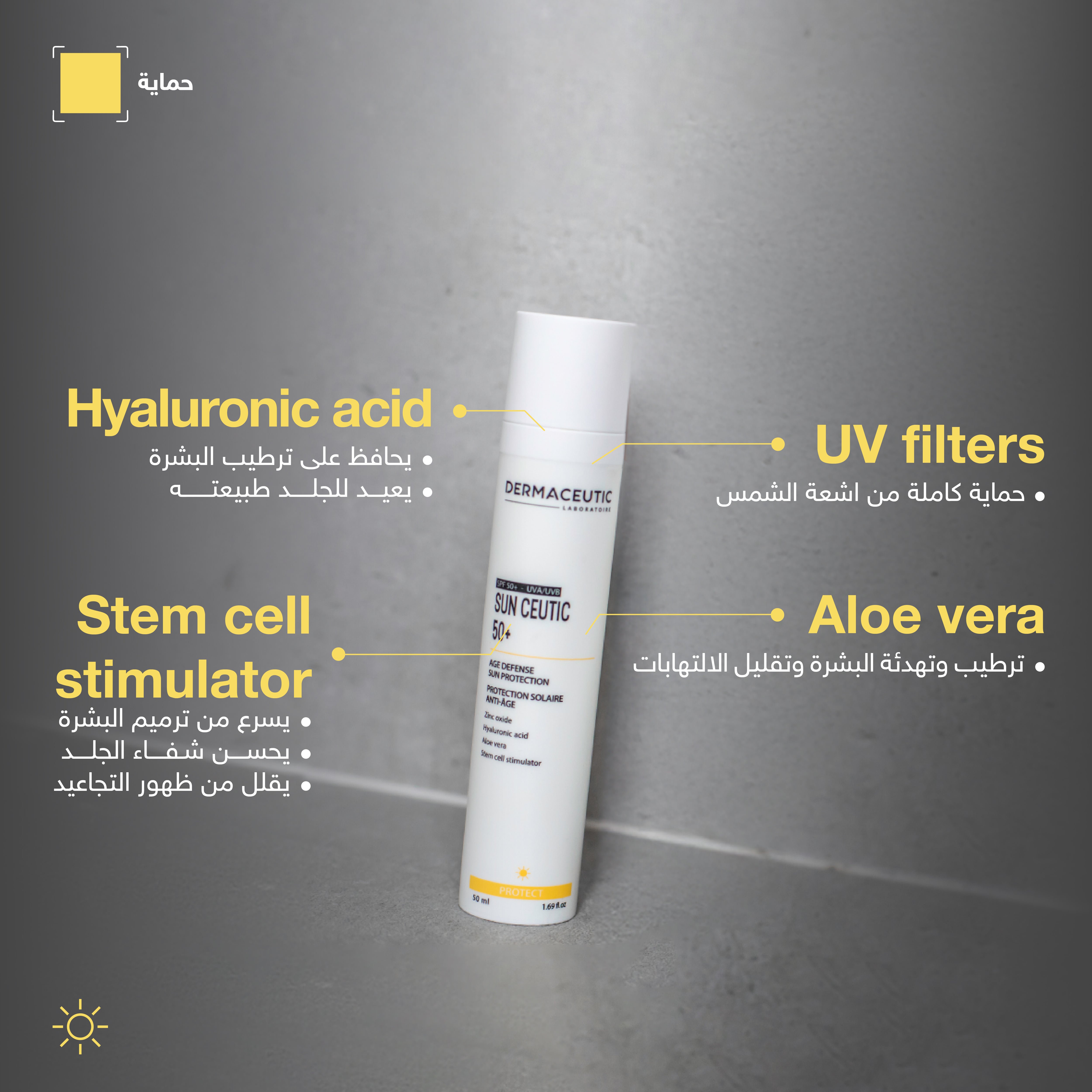 واقٍ من أشعة الشمس من الجيل التالي يحمي البشرة من الأشعة فوق البنفسجية ويوفر حماية واسعة الطيف بعامل حماية من الشمس بدرجة 50+ ضد الأشعة فوق البنفسجية الطويلة (UVA)، والأشعة فوق البنفسجية المتوسطة (UVB)، والضوء الأزرق عالي الطاقة (HEV).